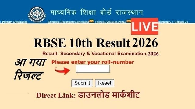 RBSE 10th Result 2026 OUT: राजस्थान बोर्ड 10वीं रिजल्ट जारी, इन Links से करें Check